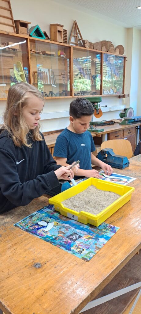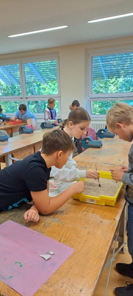 Dann sind wir losgelaufen und begannen aufzuräumen. Die Klassen 2b und 3b gingen gemeinsam mit ihren Klassenlehrerinnen und unserer Schulsozialarbeiterin Frau Haack auf die Sammelmission. Die Klassen 4b und 6b wurden in Vierergruppen eingeteilt und säuberten unterschiedliche Bereiche. Wir haben viele kuriose Dinge entdeckt, zum Beispiel einen Stuhl, ein Sofa, eine Hantel, einen künstlichen Weihnachtsbaum, Schilder, Dessous, ein Gebiss und vieles mehr. Wir haben zwei Stunden Müll gesammelt.