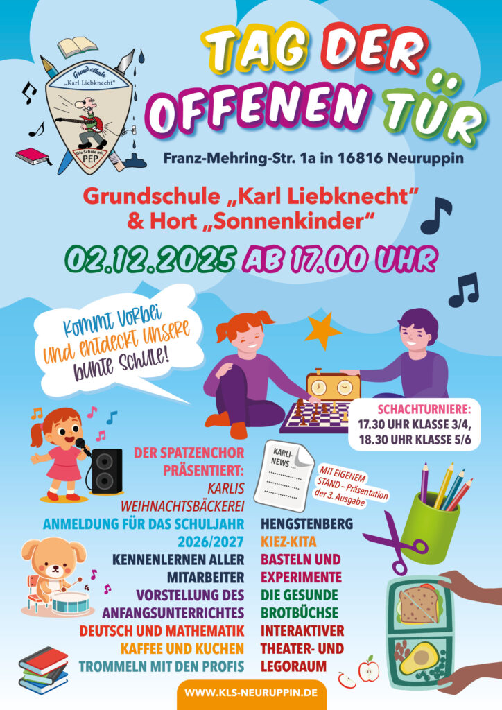 Unsere Schule, die größte Grundschule in Neuruppin, arbeitet als offene Ganztagsschule. Das bedeutet, dass unsere Kinder aus einem umfangreichen Nachmittagsangebot von Montag bis Freitag wählen können. Etwa 300 Kinder nehmen daran teil.