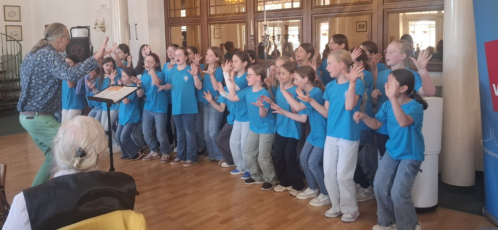 Ausdrucksstarker Auftritt um 15.00 Uhr nach Schulschluss! Den musikalischen Teil der Auszeichnungsveranstaltung von Verdi verantwortete am vergangenen Freitag unser Spatzenchor im Hotel am Rhin in Alt Ruppin.