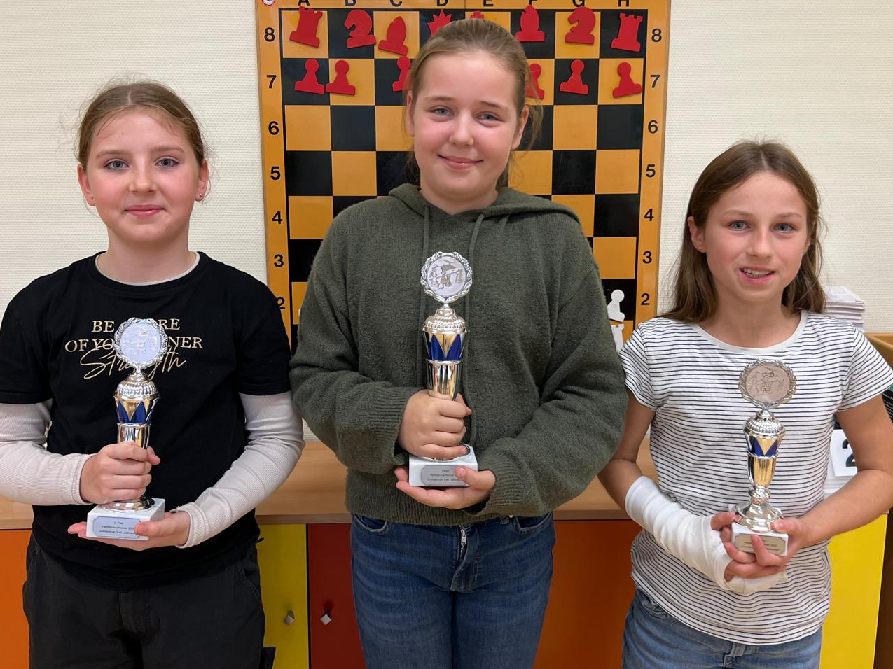 In den vergangenen Wochen nahmen fast 120 Kinder der Karli an den Herbstschachturnieren in den einzelnen Klassenstufen bzw. Trainingsgruppen teil. Folgende Kinder schafften es auf das große Podest (Platz 1-4) – wir gratulieren ganz herzlich!