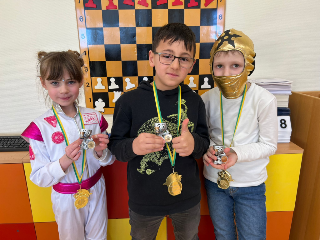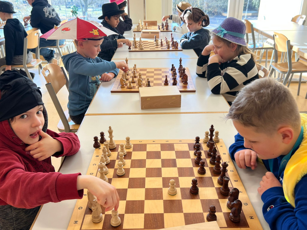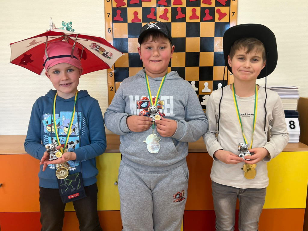 Am gestrigen Montag spielten unsere jüngeren Schülerinnen und Schüler im Rahmen des Ganztages ihr Faschingsschachturnier. Auch hier galten besondere Regelungen, insbesondere die veränderte Figurenaufstellung sorgte für Ungewohntheit. Ebenso sorgte das Schlagen das Königs für eine Besonderheit. Folgende Kinder kamen auf das Podest: