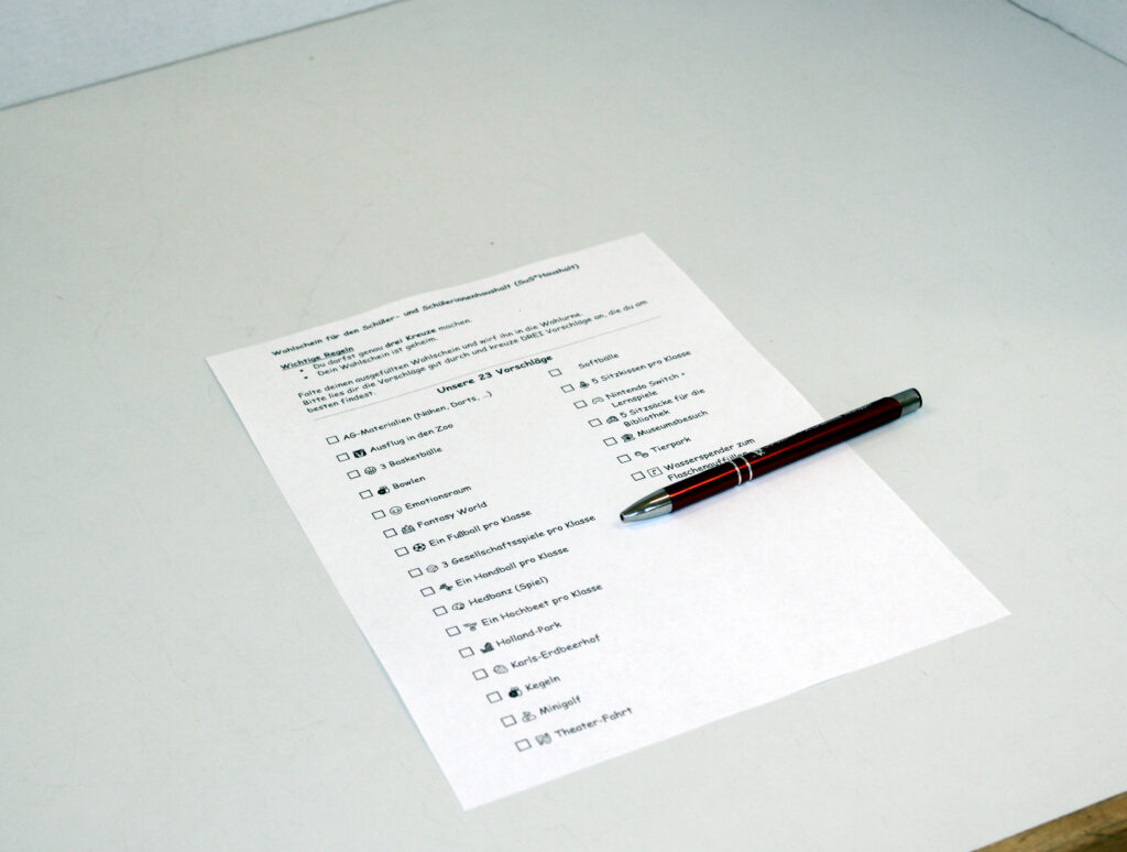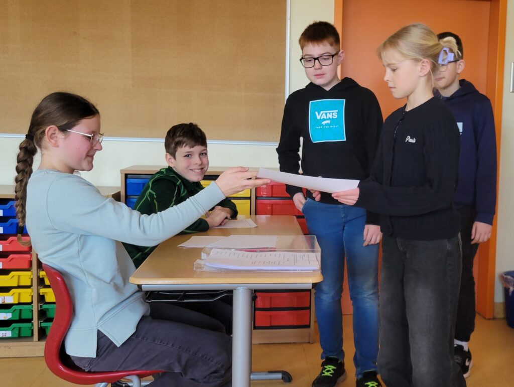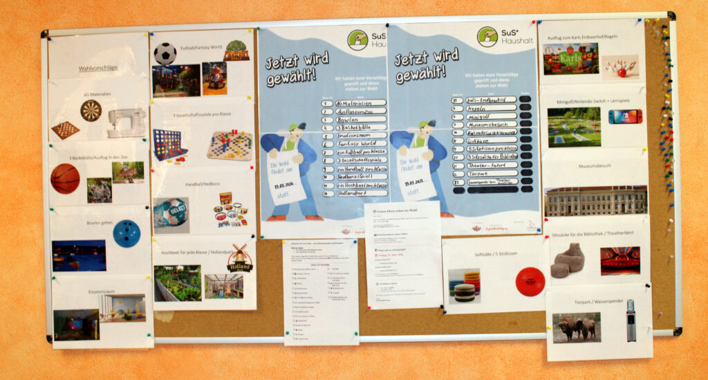Am vergangenen Freitag, 13.03.2026, fand nach umfangreicher Planung die Abstimmung für den Schülerinnen- und Schülerhaushalt 2025/2026 statt. Nachdem das Planungsteam, bestehend aus Polly, Marc, Lena und Lotta, zunächst Vorschläge in den einzelnen Klassen sammelte, wurde anschließend die Abstimmung vorbereitet (kindgerechte Stimmzettel, Ausschilderung Wahllokal) und die Anwesenden über den Abstimmungsmodus informiert. Die Planungen laufen bereits, dass der Vorschlag mit den meisten Stimmen, der Besuch der gesamten Schule in der Funtasy World Wittenberge, noch in diesem Schuljahr durchgeführt wird. Die Kosten in Höhe von 5000 Euro werden über das Startchancenprogramm finanziert, in welchem das Projekt SuS*Haushalt angedockt ist. Ziel ist es, Schülerinnen und Schüler mehr demokratische Teilhabe zu gewährleisten. Ein großes Dankeschön geht an das stetig engagierte Planungsteam sowie unsere Sozialarbeiterin Frau Haack, die das Projekt in zahlreichen Stunden maßgeblich unterstützte.